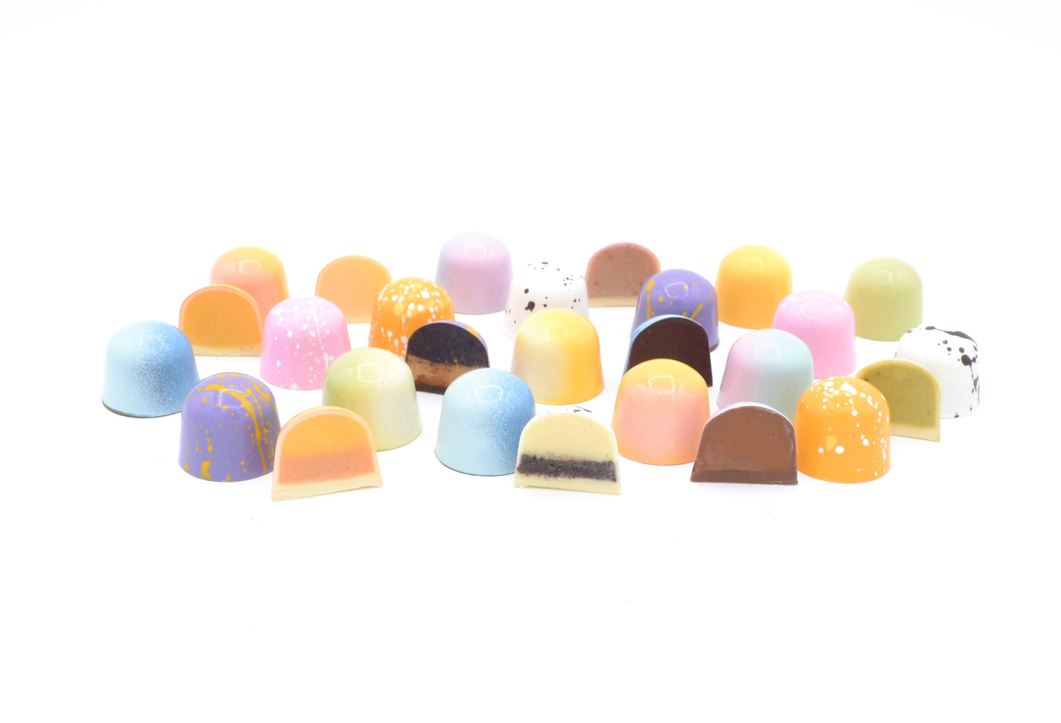 Chocolate shells filled with an assortment of ganaches, caramles, and cookies. These little sweet peices of art are the perfect gift for you or someone else.