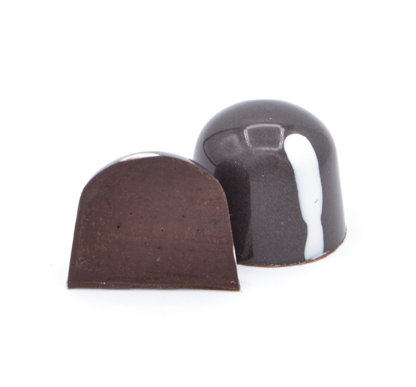 Dark chocolate shell filled with dark chocolate coffee ganache