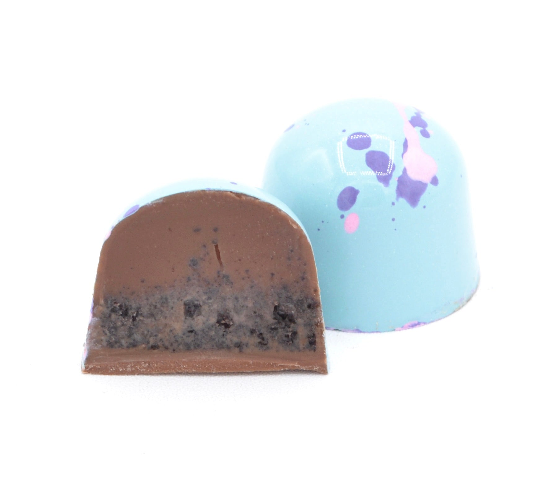 Milk Chocolate shell filled with milk chocolate ganache and chocolate cookie crunch layer