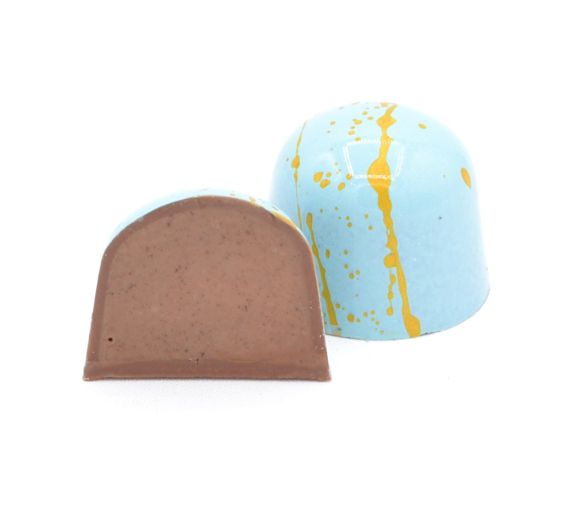 Milk Chocolate Shell filled with milk chocolate hazelnut gianduja